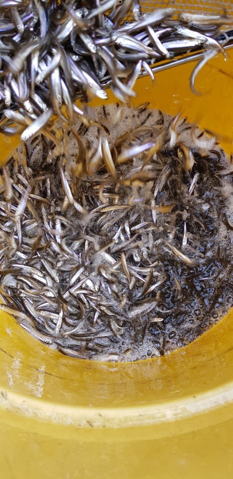 벌써 빙어한테 가있는지라 두리번 거리다 사장님의 배려로 표 끊어서 먼저 입장했습니다. 하야부사 1호 채비와 자작초릿대로 담그는 순간 파르르 떨리는 초릿대. 아들과 둘이 정신없이 잡아올렸네요 빙어사이즈는 8센치...