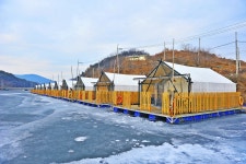 따뜻한 방갈로 안에서 실내 빙어낚…