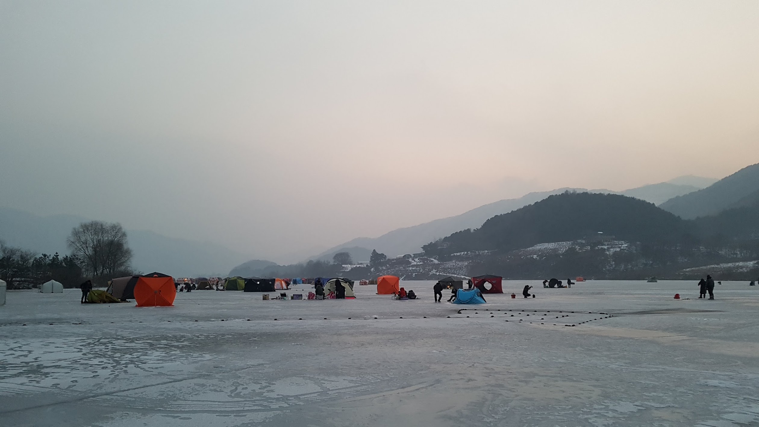 춘천 현지사 지촌리 빙박 백패킹 [주차/화장실/빙어낚시/비비색] 유명한 빙박 포인트인 지촌리 봄그리 인근은 사람도 주차도 텐트도 화장실도 헬이라 다른 곳을 찾다가... 비비색을 모르는 빙어낚시를 하시는 분들은 설마 저기서 자는건가 싶었을껀데.. 나도 얼음 위에서...