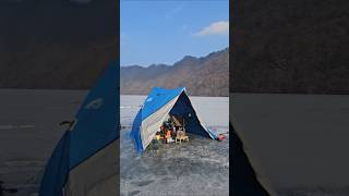춘천 지촌리 빙어낚시 현재 상황 어제 점심에 도착해서 수제버거 한개 먹고 지촌리로 왔어요 이번에 산 빙여용 원터치 텐트에요 단열제 깔았어요 낚시자리는 2자리 나와요 애들은 신났어요 어제 잡은 빙어에요 펜션에서 자고 오늘 다시 나왔어요 아침에...
